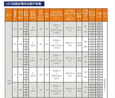 CD1型電動葫蘆工作級別: M3